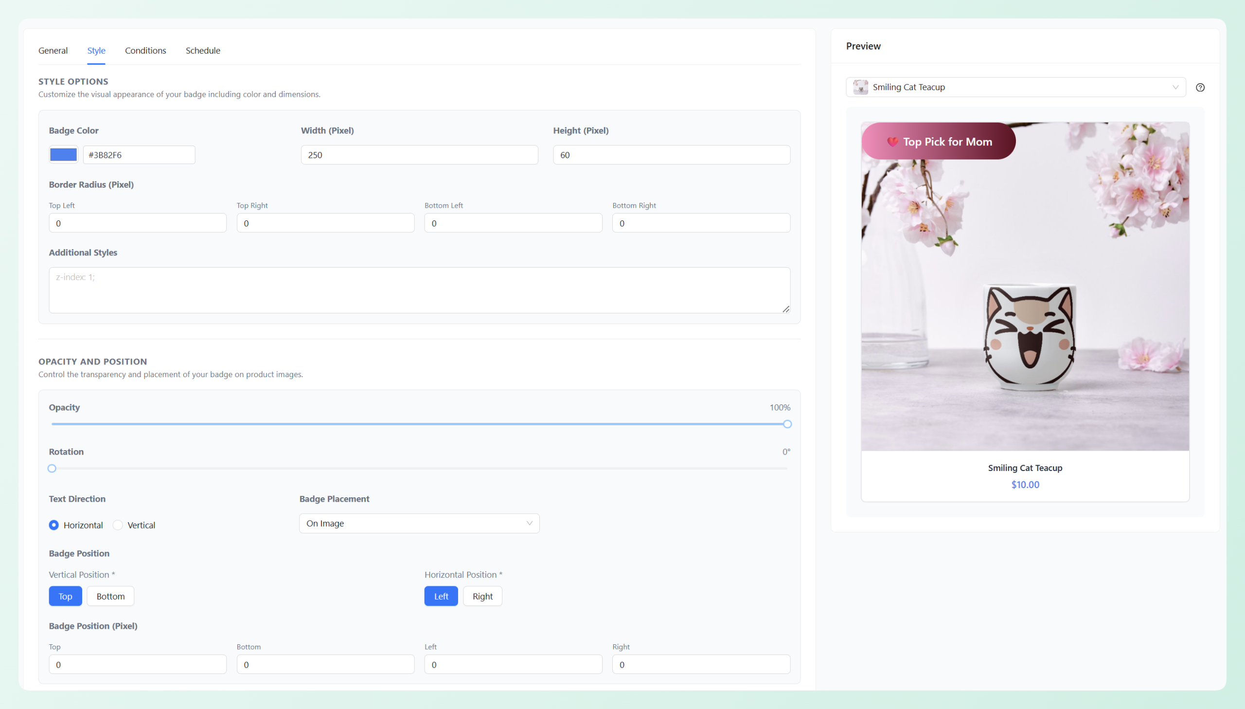 - Design and assign Mother’s Day sale badges to featured products