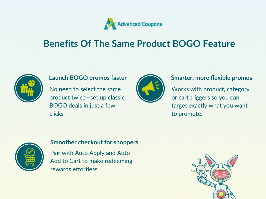 Three benefits of the Same Product BOGO feature: faster setup, flexible promotions, and smoother customer experience