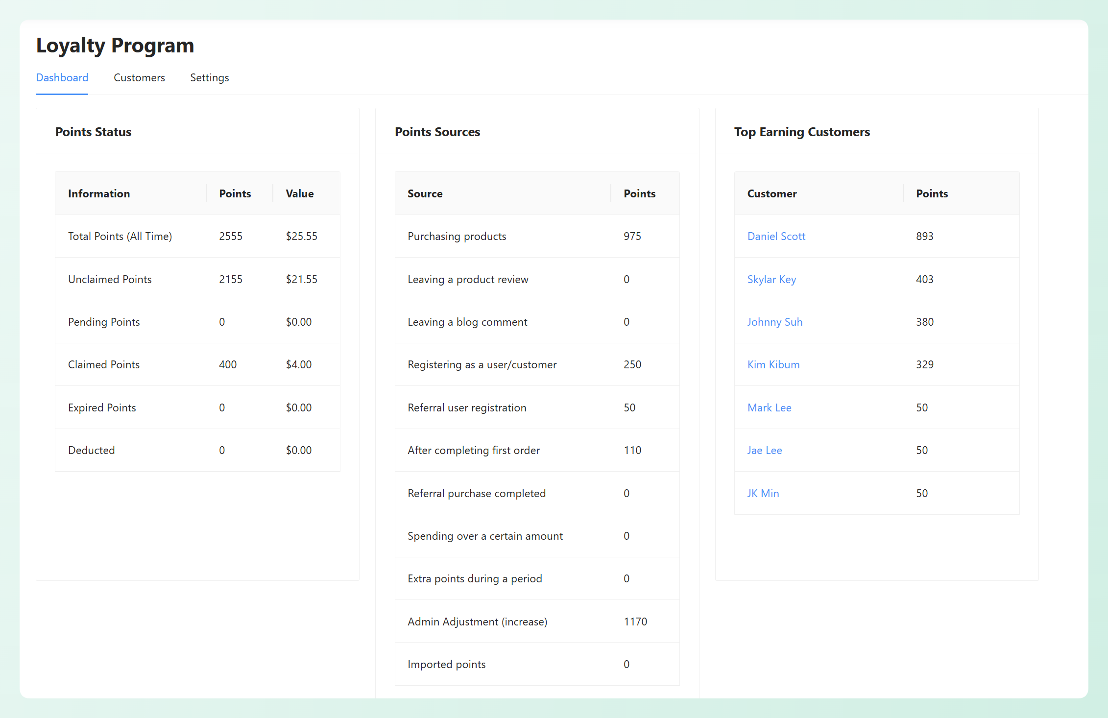 See how the Advanced Loyalty Program dashboard surfaces points activity sources and top earning customers at a glance click to zoom